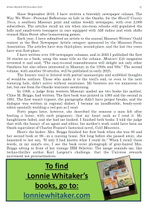 Lonnie’s article, “A Writer’s Journey,” appeared in the December 2024 issue of Writers Monthly PDF. The article appears below.